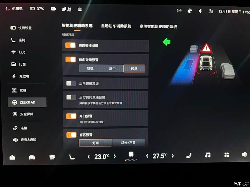 第二个就是,一定一定一定要养成经常看后视镜的习惯,很多时候我们在变道或者转弯的时候容易忽略后方的情况,这时候后视镜就能发挥大作用了,再搭配极氪001的变道辅助来用,安全感满满!