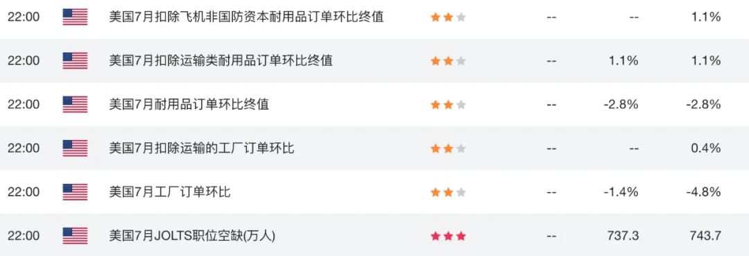 今日9月3日周三,市场暂无日本方面重要经济数据的公布,投资者需留意北京时间22:00美国JOLTS 职位空缺数据的公布。