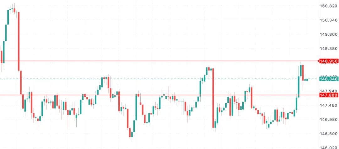 整体来看,周二交易时段,美日汇价受美元指数反弹带动下走高,日内最高触及148.94水平,最低测试147.04水平。