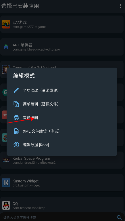 1、首先把APK编辑器专业版安装到安卓手机上,然后打开它,选择一个应用作为APK,然后找到需要修改名称和图标的应用。