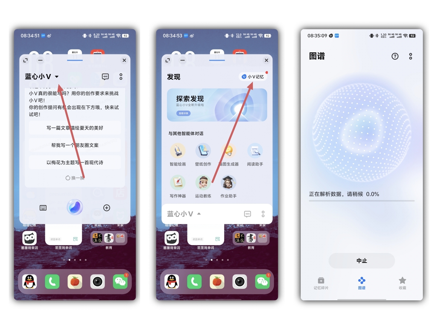 OriginOS 5引入了智能体对话和图谱功能。用户可以通过蓝心小V,进行智能对话,获取信息或完成特定任务。在蓝心小V的对话界面中,用户可以提出各种问题,小V会智能回答并提供帮助。此外,系统还提供了图谱功能,正在解析数据,为用户提供更加直观的信息展示。
