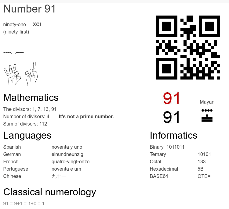 If you know something interesting about the 91 number that you did not find on this page, do not hesitate .
