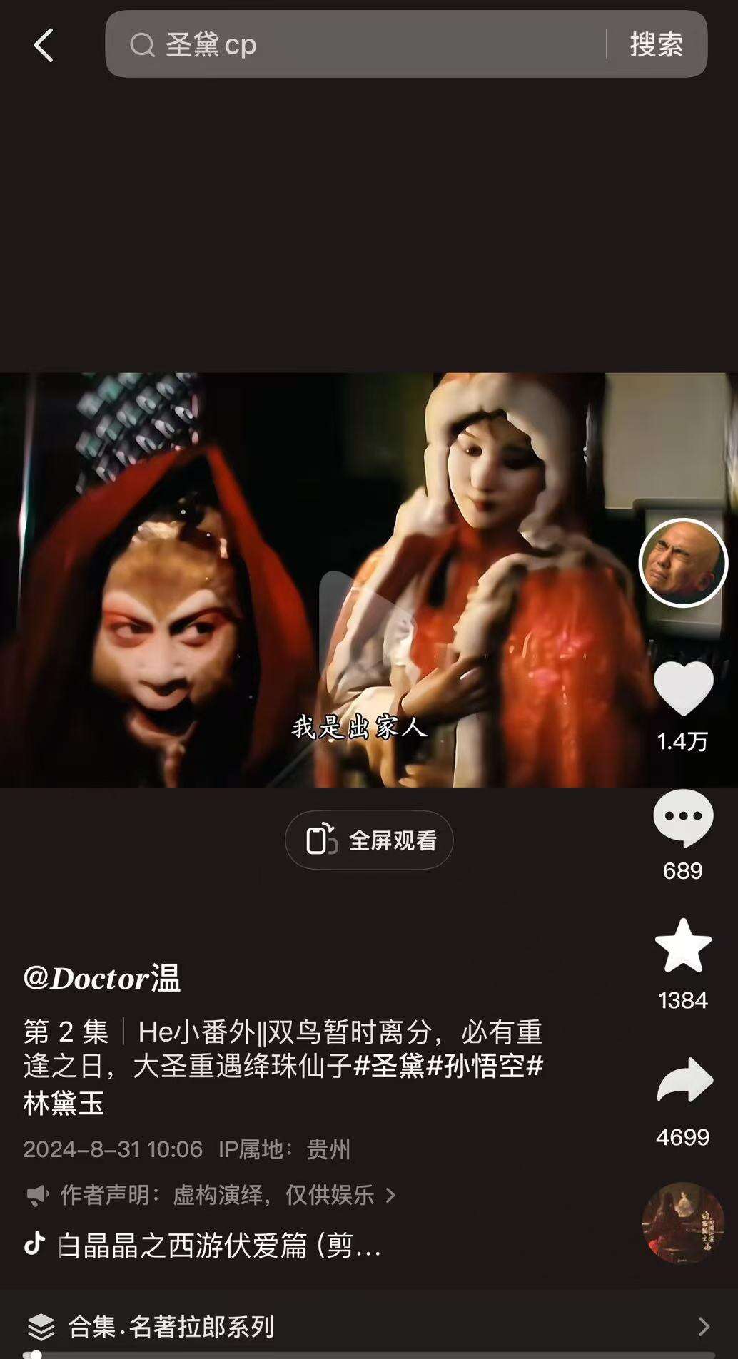 2024年8月,抖音博主Doctor温剪辑的“圣黛”视频颇受网友喜爱。图源抖音@Doctor温。