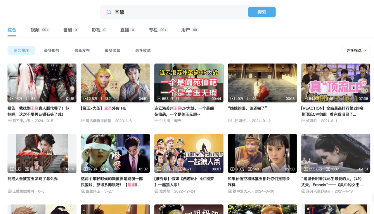 记者在b站搜索发现,2020年8月18日,up主“悟空不吃桃桃”就曾发布“圣黛”标签、题为《一个只属于齐天大圣与世外仙姝的故事》视频。虽然该视频不如时下大热的“圣黛”视频丝滑,3000多次播放的播放量仿佛还有提升空间,但从时间上可以判断,该视频堪称“圣黛”中的“元老”。