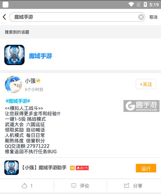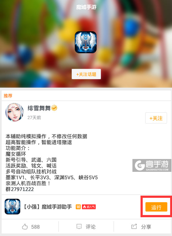 最后,关于此款魔域手游辅助工具软件如果在使用的过程中有什么不满意的地方或者有需要改进的地方可以关注我们的微信公众号(gaoshouyou)提问或者在下方留言给我们,我们会即时更新并处理。我们会认真对待您的每一条评论,并反馈给脚本作者,以便提升您的游戏质量。
