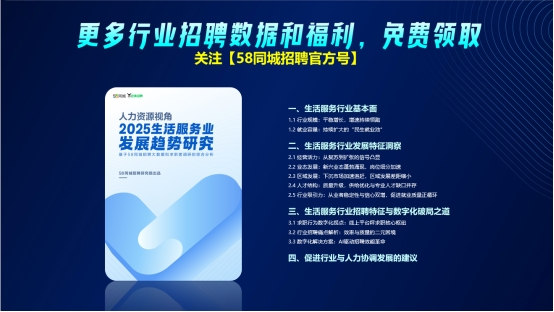 如今,生活服务业招聘已进入“数字化生存”阶段。58同城作为深度植根生活服务的专业平台,凭借强大的AI技术能力、行业化适配的解决方案与产品矩阵,为行业提供了破解之道的系统性解决方案。未来,58同城也将持续深化AI在招聘全链路的应用探索,实现“让AI做的更多,让企业做的更少”,为促进生活服务业转型升级贡献更多力量。