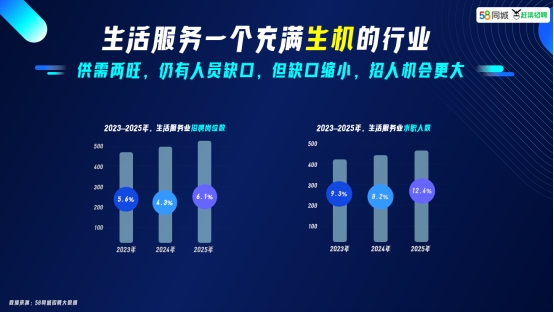 韩笑指出,近年来,生活服务业的招聘需求增势强劲。58同城平台数据显示,2024年及2025年一季度,生活服务业岗位供给量分别同比增长4.3%、6.1%。同时,在技术革新与消费结构性升级的驱动下,生活服务业岗位趋于精细化、专业化,如旅拍定制师、适老化改造师等专业服务工种不断涌现,新增的职位主要集中在休闲娱乐、美业等领域。