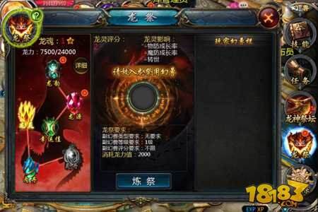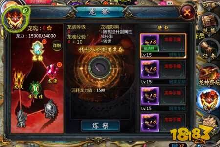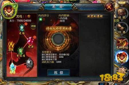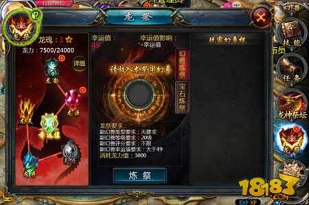 培养方式:①幻兽炼祭:将符合条件的幻兽放入中心圆框即可进行炼祭;②宝石炼祭:龙魂幸运值达到70以上即可使用幻魔晶石或幸运药水进行炼祭。(注:以上两种炼祭方式均需消耗龙力值)