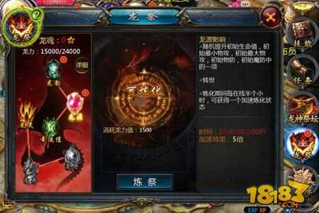 培养方式:消耗龙力值进行炼化,炼化期间每在线半小时即可获得一个加速炼化状态。