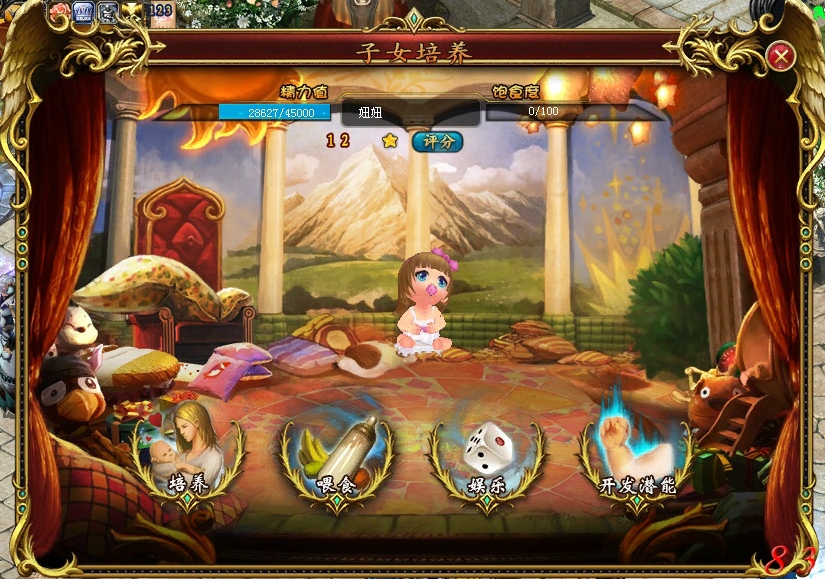 超实力宝宝横空出世:6大类属性,12种子女宝宝,品种广,属性高,其中有最大物攻高达56.25,足以媲美双星的物理攻击型宝宝,更有主属性幻化无任何副宠要求、新增任命骑士最高可加成7点战斗力、法师型可合体等超实用特权,提升前景无可限量,全力辅助父母实力飙升!