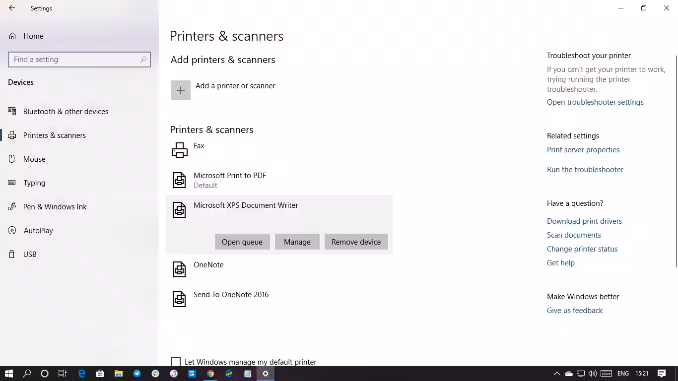 已安装的打印机:单击打印机列表 > 管理。首先,尝试打印测试页。接下来单击“运行疑难解答”以查看是否可以修复该问题。如果不起作用,请卸载并重新安装打印机。