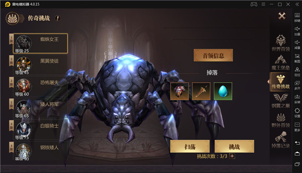 小提示:点击首领页面的首领信息能够看到该传奇怪物的相关属性,大家可以参考这个属性表去准备,确保本次挑战万无一失。