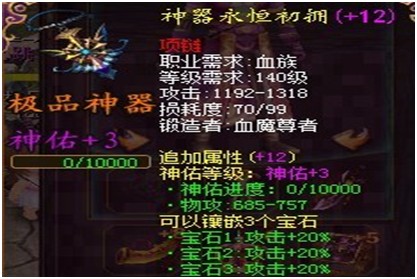 能让装备达到最大化攻击,换句话说,这种石头越多越好,目前魔域的装备攻击加20%的石头是能镶嵌11个的。至于神器,神佑等级是有了神之后能享受到另一种优惠——加攻击。