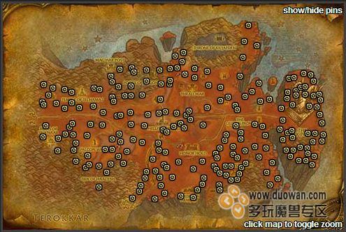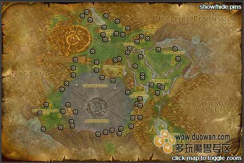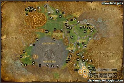 首先顺时针挖位于地狱火半岛上分布众多的魔铁矿: