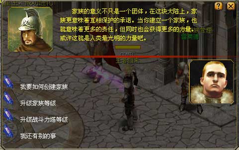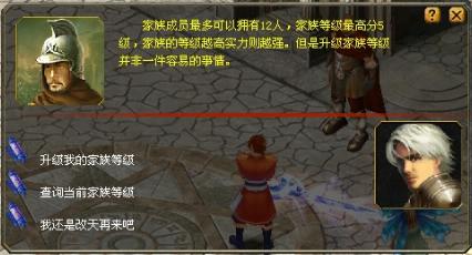 2、找到他和他对话选择“我要如创建家族”,之后他就会告诉你建家族方式。