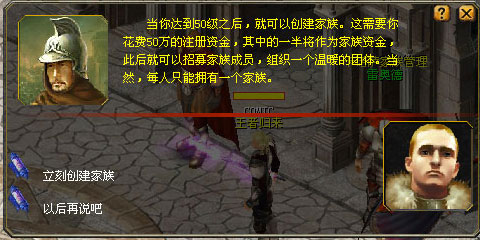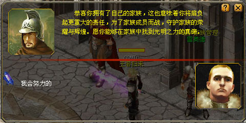 3、哈哈只要你等级达到50以上,身上带有50万的金币管理员就会授予你管理家族能力,现在你就是族长了。
