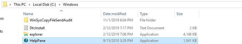 转到C:/ Windows并找到HelpPane并右键单击其属性。