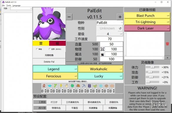 这是一款由玩家“Eternal Wraith”制作的工具,久久魔域怀旧版PALEDIT是一种简单的用户界面,用于在保存文件数据中编辑和生成帕鲁。将特征编辑到帕鲁中,这样您就不必处理整个繁殖过程来尝试获得完美的技能,要在保存中添加帕鲁,请克隆您喜欢使用图片下的按钮的任何帕鲁,然后更改其物种,统计信息或其他任何一种帕鲁。删除帕鲁正在进行中,始终确保备份保存文件!