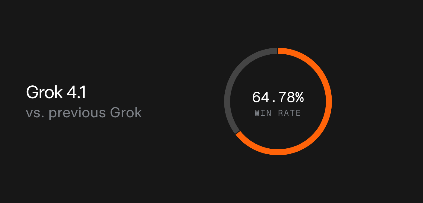 相比于上一代,Grok 4.1 在用户偏好测试中被选中率约为 64.78%。