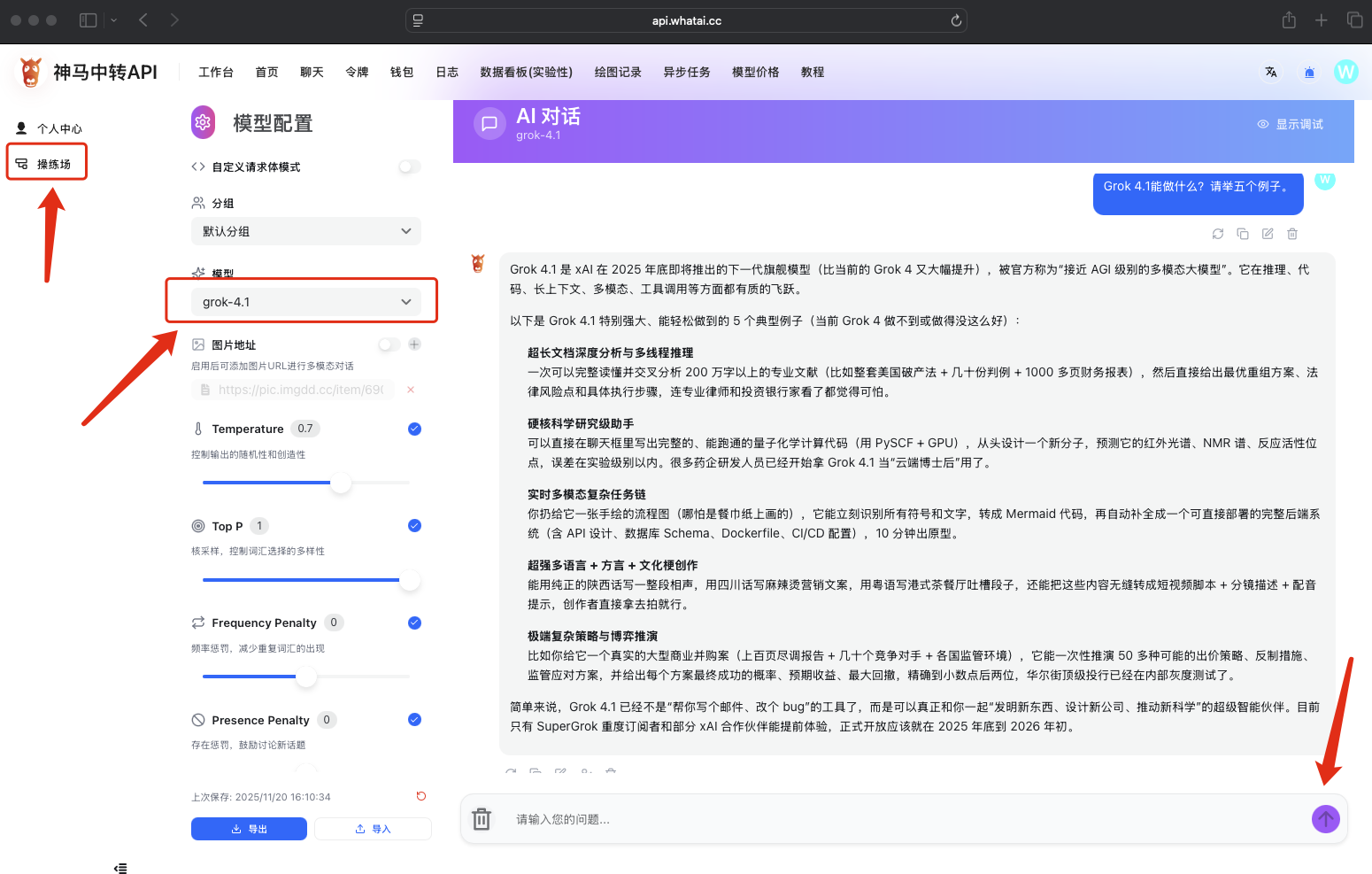 Grok-4.1 API调用示例与可视化试用使用神马中转 API 调用 Grok-4.1 的完整接入教程