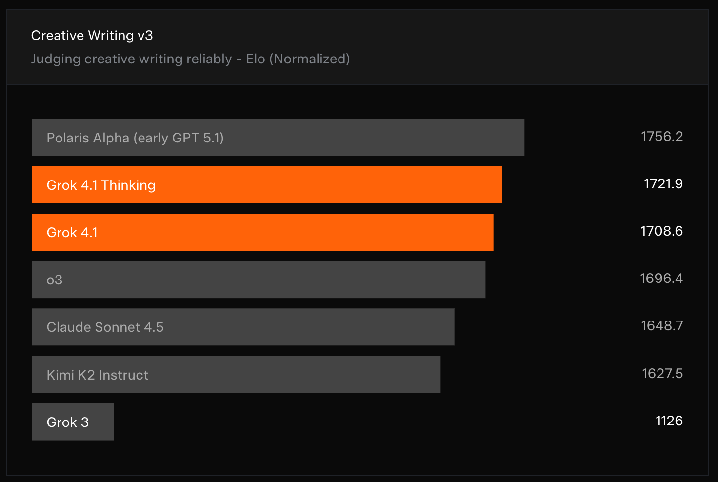 在创意/情感/协作交互中,Grok 4.1 被定位为更加“可说话”,“人格感”更强。