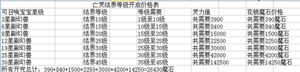 既然了解了结界等级和召唤多少星级的幻兽,然后我们改讲解需要开启结界的价格了。