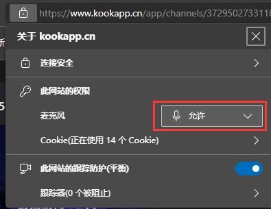 1. 点击地址栏左侧小锁,修改“麦克风”项为“打开”状态(滑块变蓝就表示打开了)。至此,麦克风授权完成。