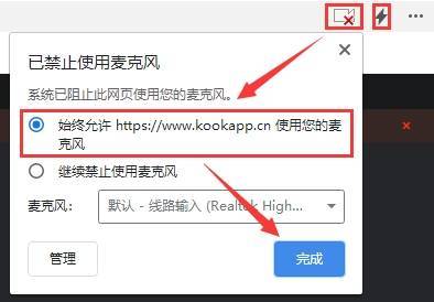 1. 点击地址栏左侧话筒图标,再点击“使用麦克风”右侧的“已临时阻止”或“已阻止”。然后请重启连接语音频道。