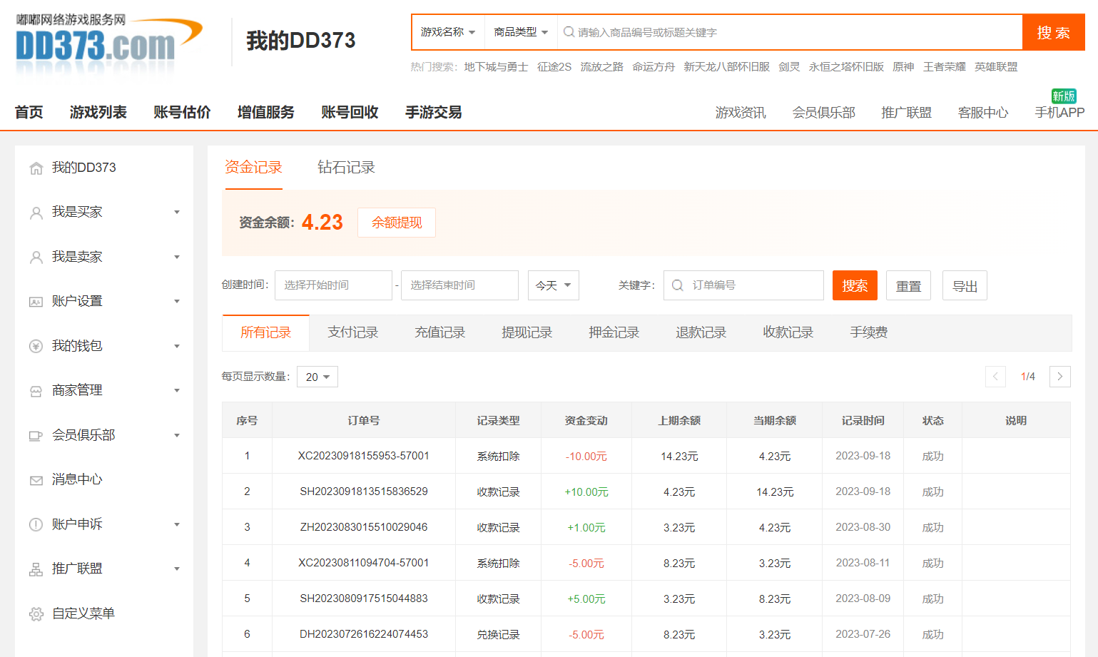 3、点击之后进入对应选项的明细记录页面,可查看资金明细记录。