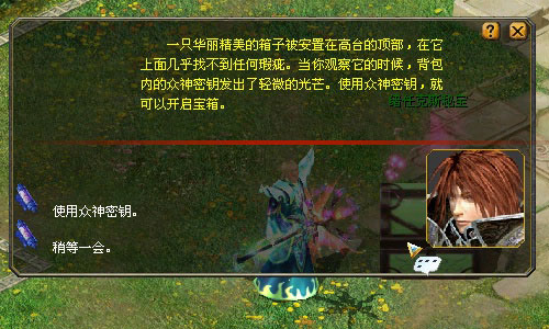 来到了第二座花园。这里的神仆微笑着提醒说,从第二座花园开始,每座花园里都有一个宝箱!不过,开启这些宝箱也是要消耗众神密钥的,也就是说,如果开启了这些宝箱,虽然可以拿到里面的宝藏,但同时也会被送出众神秘境。