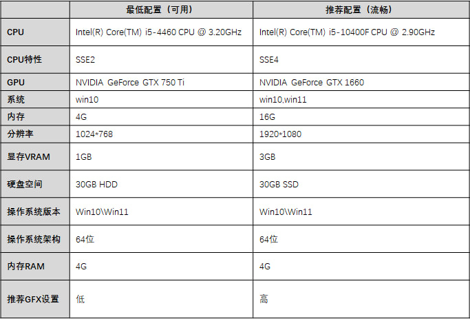 游戏所需配置介绍