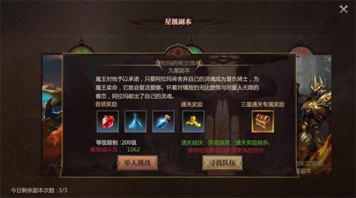 星级副本同样有每天的限制次数,与星级怪不同的是,你在进入副本之前,可以选择的选项会比较丰富。其中包括副本的难度,以及单刷副本还是和队友组队进入。副本的难度越高,进入的队友越多,则获得奖励的投入产出比也就等比上升。