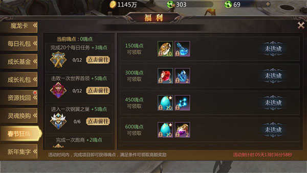 5、上面就是一小部分新手提升活动,玩家只需要用几分钟轻松清理掉活动任务,就可以获得巨量的道具/金币奖励。在新手速升战力上,有着巨大的帮助。