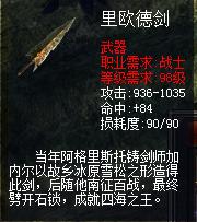 名称:里欧德剑;职业需求:战士;类型:武器;等级需求:98级;当年阿格里斯托铸剑大师加内尔以故乡冰原雪松之形造得此剑,后随他南征北战,最终劈开石锁,成就四海之王。看到这把剑,小记有一种莫名的兴奋!原来四海传说,早就在我们的魔域生活中流传了,只不过我们一直没怎么注意罢了,四海之王阿格里斯,亚特兰大陆的一位了不起的英雄!其所带佩剑,可以说是凡人的最高成就的兵器了。