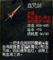名称:血咒剑;职业需求:战士;类型:武器;等级需求:90级;一把来自地狱的魔剑。在血海里静置千年而魔化,以血为食,因此通体血红,剑身上有血海之浪。一把带有诅咒的魔剑,剑身带着邪气,让人不寒而栗,非正道之人所持有。