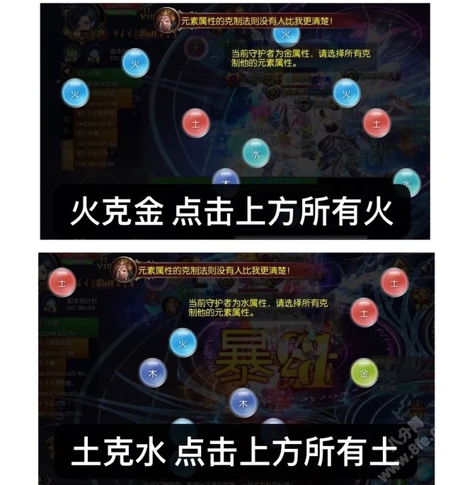 进入一个点五行元素的界面,需要点击系统给出的元素所对应克制的元素 (金克木,木克土,土克水,水克火,火克金)