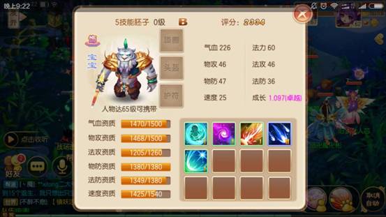 血敏宝宝:隐身,迅捷,飞行。其他技能参考耐宝宝自己选择。加点全敏,这样的敏宝宝可以保证比人物优先出手,这样就可以和队伍中的圣巫、天音更好地完成配合。
