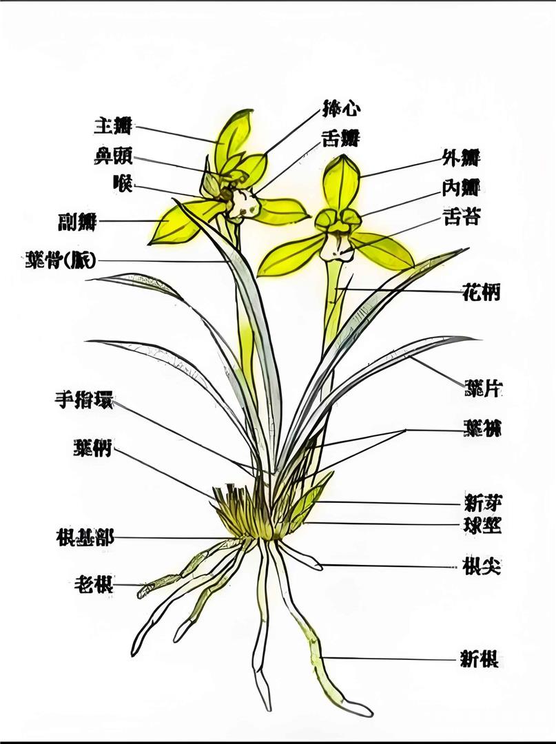 这些结构的多样性和特殊性使得兰花在植物界中独树一帜,并且对兰花的分类鉴定和适应不同生态栖息地的研究具有重要意义。