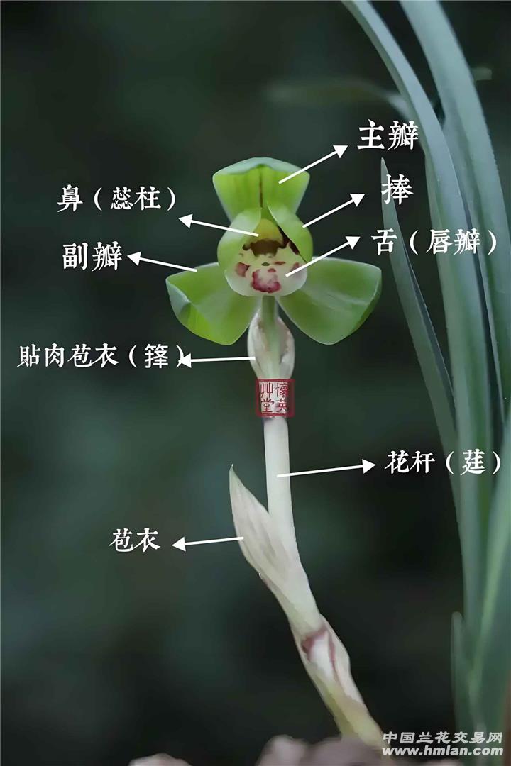 5. 蕊喙:兰花柱头和花药之间的舌状器官,是兰花特有的器官,主要作用是防止自花授粉。