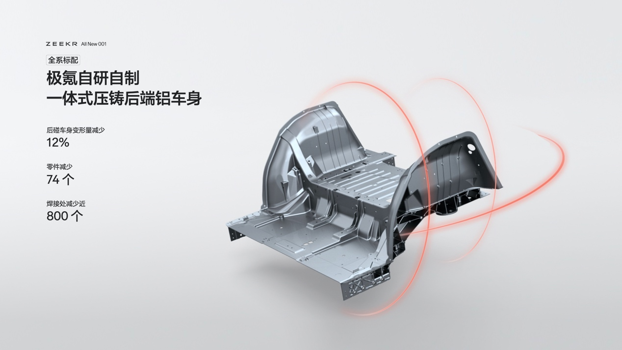 全新极氪 001 全系标配一体式压铸后端铝车身