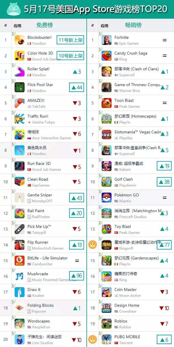 本期美国市场出海之星:《魔域手游》,《PUBG MOBILE》