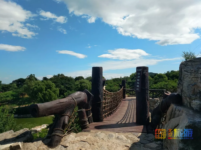 走着走着,前面忽然出现一座吊桥。木板的桥面由粗大的缆绳连接,走在上面,一阵风吹来,就觉得摇摇晃晃,充满趣味。