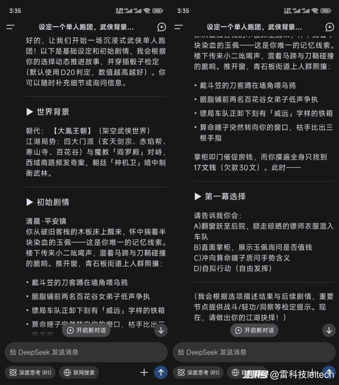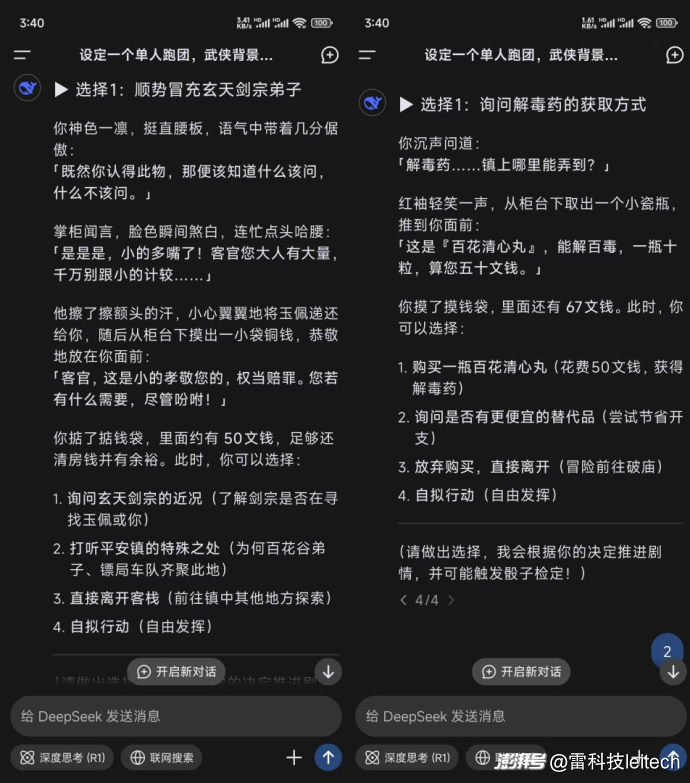 只要玩家选择DeepSeek给出的选项,或是自己输入的内容有一定连续性,那么DeepSeek续写的情节一般不会过于跳跃。
