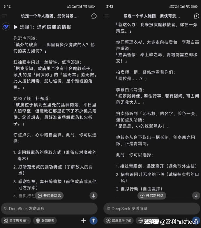DeepSeek也能基于我过去获得的情报,自然地在下文中展开情节。
