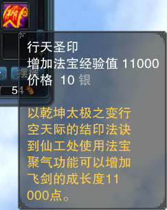 当随着飞行时间的累积,飞行道具下方的蓝色经验条就会增加,当经验槽满时,就可以到仙工处,使用法宝升级,来进行对飞剑的提升。